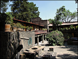 This is a hacienda-style house with an impressive stone facade almost volcanic shields inside. It is located on the corner of Olivia Dulce, situated in the delegation Coyoacan in southern Mexico City.
